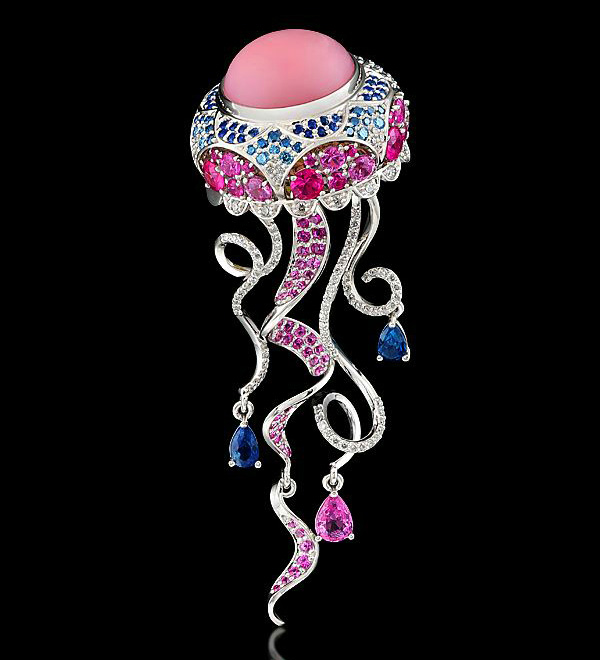 Кулон из коллекции "Секреты океана": 18К белое золото, опал 8,05 ct, бриллианты, голубые бриллианты, голубые и розовые сапфиры, топазы голубой Лондон.