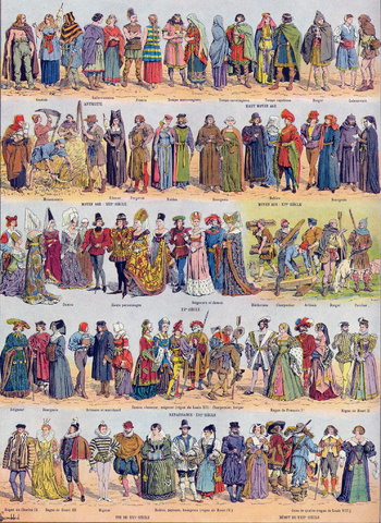 Историческая одежда Франции (и Европы) до 1640 года (Larousse 1932).