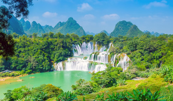 Это два 30-метровых водопада на границе двух государств, Китая и Вьетнама. Во время половодья они сливаются в один.