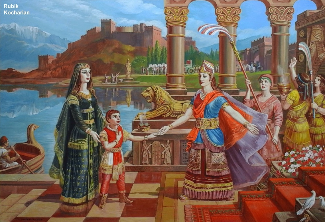 Царица Нвард со своим сыном Кардосом у царицы Семирамиды