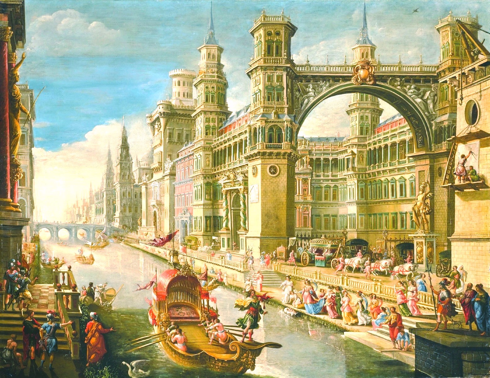 Полное название картины: Экстравагантное архитектурное каприччио с государственной баржей на канале и дочерью фараона, находящей Моисея.