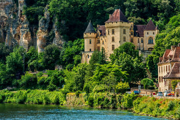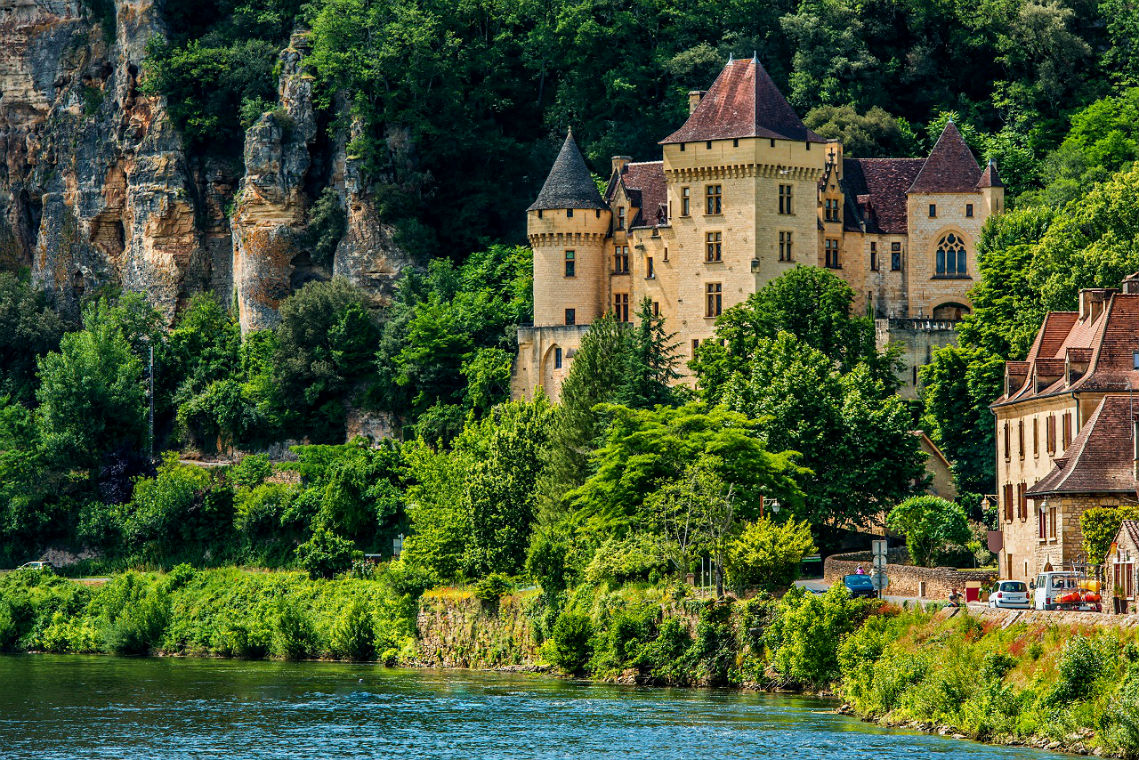 Удивительная французская деревушка La Roque-Gageac расположилась на берегу реки Дордонь на юго–западе Аквитании в департаменте Дордонь. Она плотно прилегает к скале, которая прекрасно заслоняет ее от северных ветров, позволяя бурно расти красивой южной растительности.